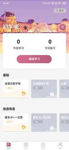 选择想学习的内容,分别为初学者、基础、旅游用语;