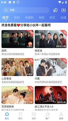 2、只要打开历史记录,随时回到上次观看点,热门剧集就会立即提醒用户。