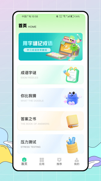1、趣味学习方式:采用游戏化的猜成语形式,把单调的成语学习转变为一种有趣的挑战,使用户能够在轻松愉快的环境中学习成语。