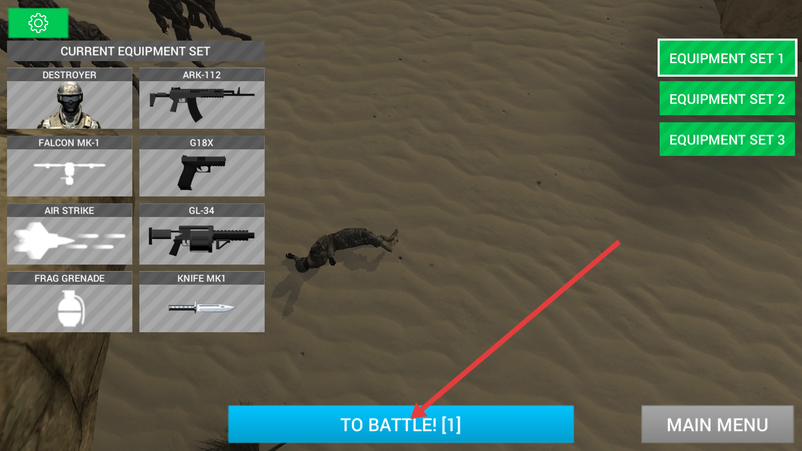 在装备界面挑选适配的装备套装(例如EQUIPMENTSET1),点击【TOBATTLE!】按钮,即可进入战斗挑战环节。