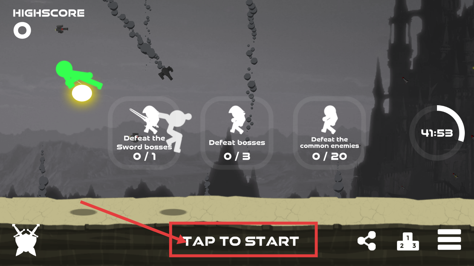 点击【TAP-TO-START】按钮即可启动游戏,在游戏中你将挑战击败剑之首领、普通敌人等各类任务,通过完成这些任务来积累更高的分数。