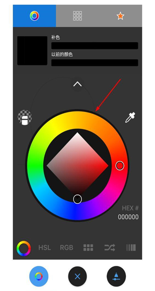 进入颜色选择界面后,能看到色轮以及补色、历史颜色等选项,在色轮上挑选想要的颜色,即可完成绘制颜色的设置。