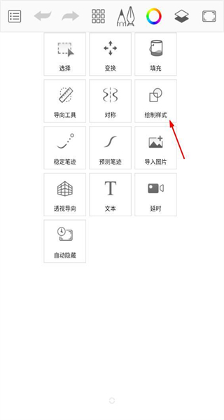 打开软件后,进入工具选择界面,能看到选择、变换、绘制样式等多个工具选项,点击绘制样式。