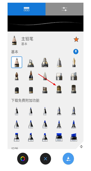 进入笔刷选择界面后,你会看到主铅笔以及各式各样的笔刷样式,从中挑选出适合的笔刷,就能开展绘画创作了。