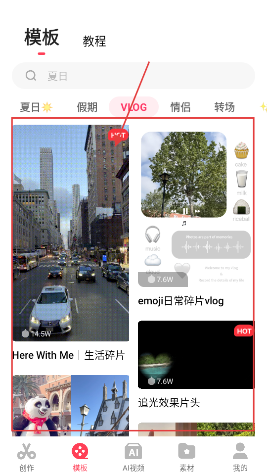 选择【VLOG】分类,这里面包含生活碎片、追光效果片头等模板,挑选你喜欢的,点击进入就能查看详细信息啦。