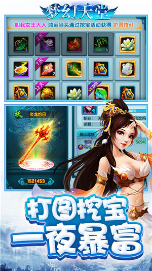 《梦幻天堂》拥有酷炫的战斗特效和创新系统,全新幻化飞行坐骑助你激战神魔。游戏采用策略即时战斗模式,展现智谋与速度的双重较量!更有每日福利可领取,以及自由的市场交易,不花钱也能畅玩,打破常规设定,体验不一样的革新!此外,还有神将系统助你斩妖除魔!