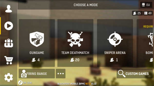 碉堡射击是一款2D像素风格的多人在线沙盒射击游戏,拥有流畅的操作手感,能为玩家带来紧张刺激的射击体验!游戏既保留了经典在线射击游戏的核心玩法,又融入了当下热门的联机模式,因此受到全球射击游戏爱好者的喜爱。游戏最亮眼的部分当属丰富的武器库,AK、转管机枪、狙击枪、像素枪、冲锋枪、手枪等各类枪械一应俱全,此外还有多样的角色及角色皮肤可供选择——只要在战斗中获胜就能获取奖励,这些奖励可用于在游戏商店购买心仪的道具。游戏的主要模式包括:安放与拆除炸弹、团队竞技争夺最优战绩、竞技场中的狙击手对决与枪战等。无论是主动反攻还是坚守防御,只要能助你取胜的战术,都可以大胆运用!