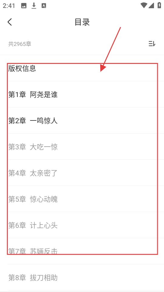 在目录中,可以清晰看到各章节的标题,像【第1章-阿尧是谁】【第2章-一鸣惊人】这类,选择自己想看的章节点击进入即可。