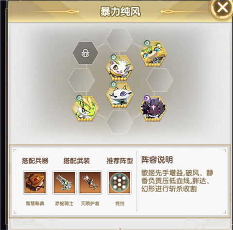 歌姬首先提供增益,破风和静香负责降低敌方血量,胖达与幻形则进行最后的斩杀和收割。
