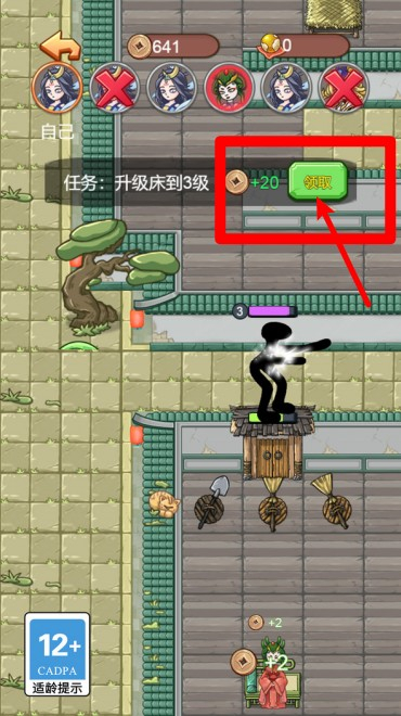 1.完成任务领奖励:完成指定任务如升级床铺等级后,可点击“领取”按钮获得木材奖励,用于后续建筑或角色功能提升。