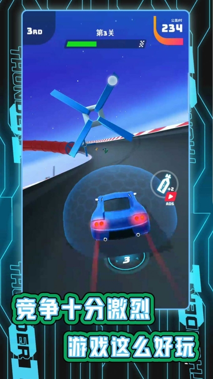 5、玩家使用的赛车均采用高科技打造,让玩家体验到不一样的赛车乐趣和赛车游戏的科技感。