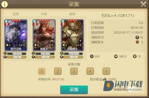 7、攻下4级地后,别停顿,立即进行资源采集,特别注意石料需求是其他材料的双倍。