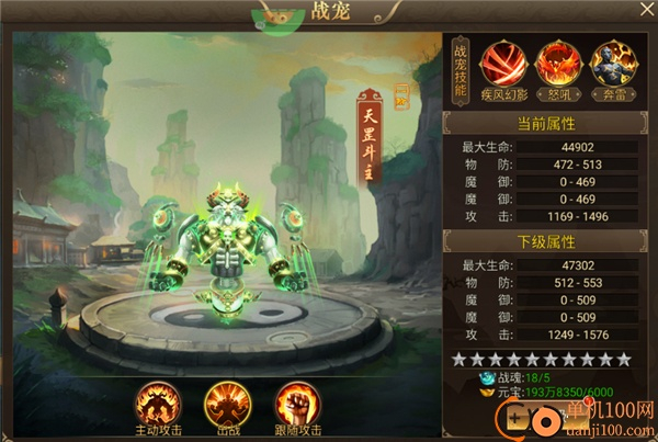 您可以在游戏花费战魂材料,花费元宝给自己的战宠升级,可以提升生命值、防御、攻击力