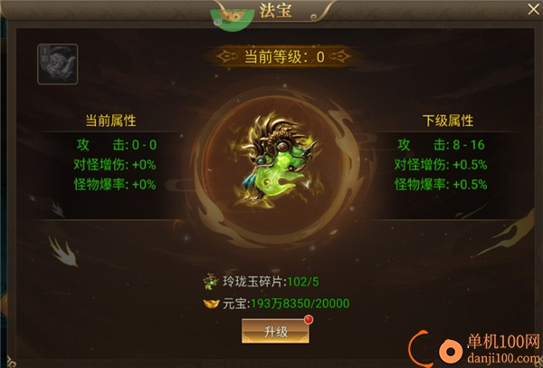 您可以在悟空修仙传游戏中获取法宝装备,可以对法宝升级,增加攻击力,增加伤害,增加怪物爆率